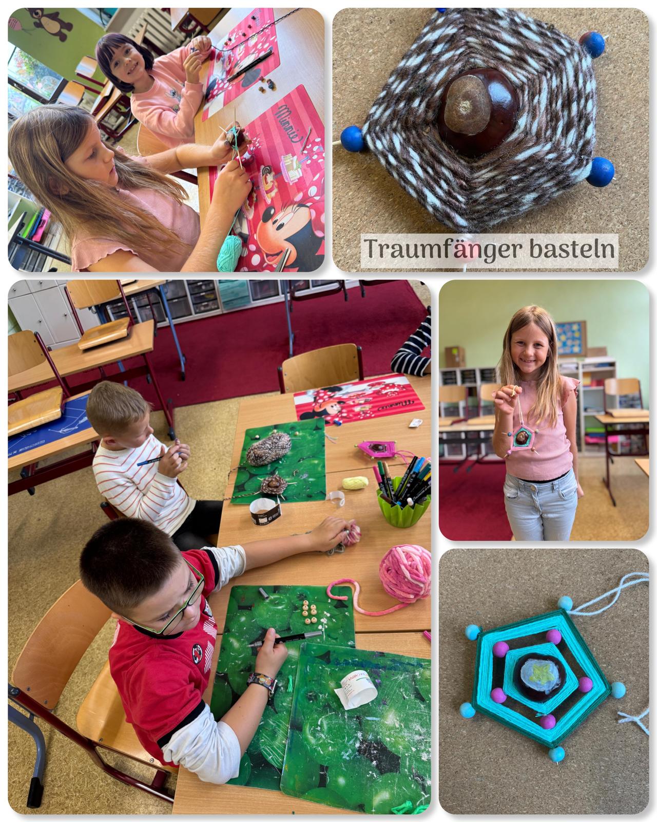 Auch das Basteln kam in den Ferien nicht zu kurz: mit einem Brett, Nägeln, Hammer und Wolle entstanden tolle Herbstbilder. Aus Kastanien wurden Traumfänger gebastelt, Gipsfiguren bunt bemalt und Kürbisse fantasievoll verziert. So entstanden viele kleine Kunstwerke, und die Kinder konnten ihrer Kreativität freien Lauf lassen.