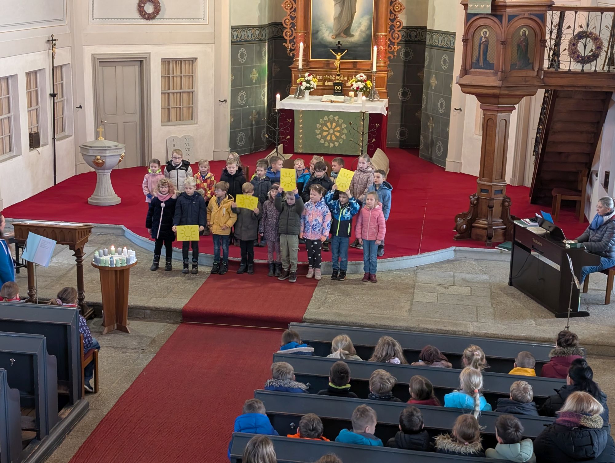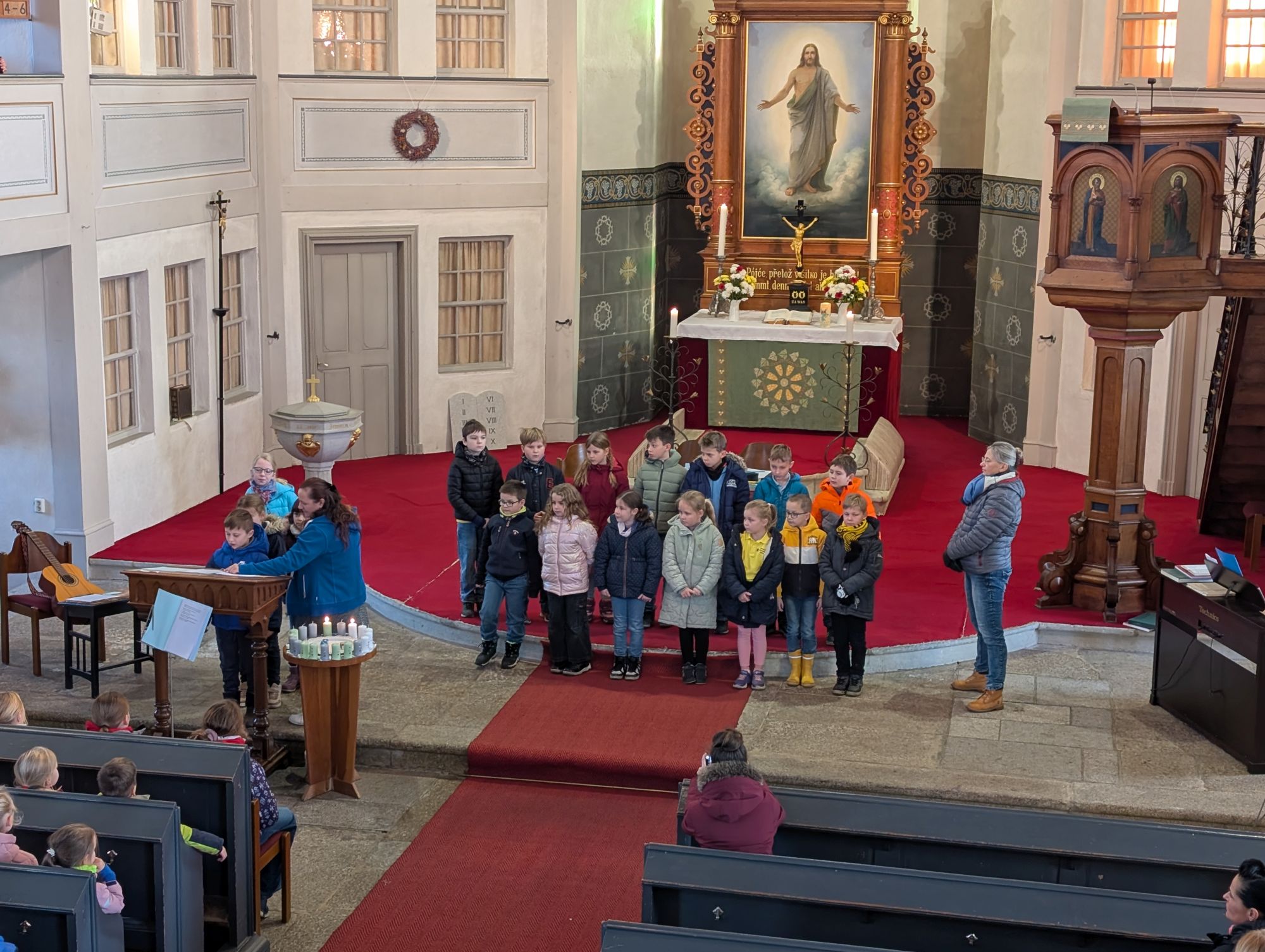 Der Schultag begann nicht im Klassenzimmer sondern in der Kirche zu Oßling mit einem Gottesdienst.