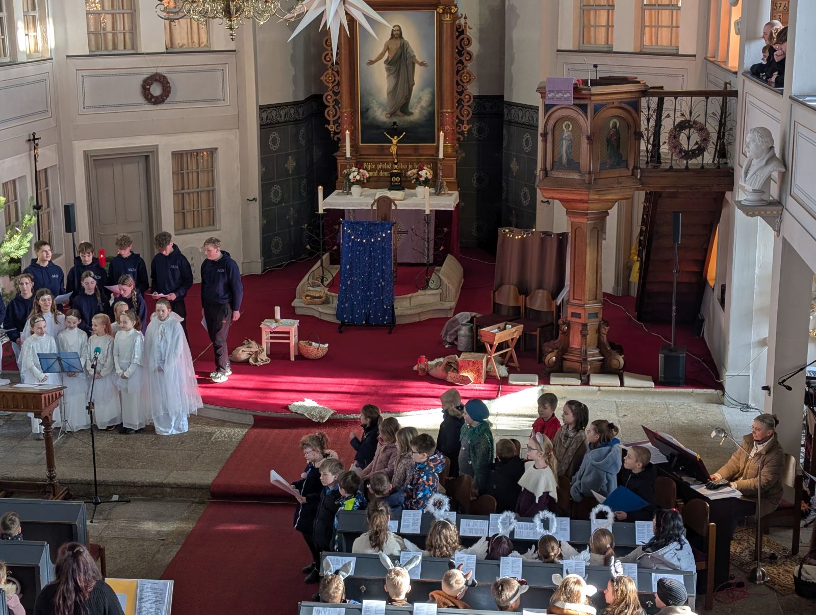 Wie immer sind Eltern, Großeltern, Geschwister usw. gern zu den Schulgottesdiensten mittwochs 10:25-11:10 eingeladen. Eine herzliche Einladung auch zum Krippenspiel im Weihnachtsgottesdienst am Freitag, den 20. Dezember um 11:40. Frau Osang wird dieses mit über 50 Kindern aufführen und es wird eine schöne Einstimmung aufs Weihnachtfest werden. „O du fröhliche…“