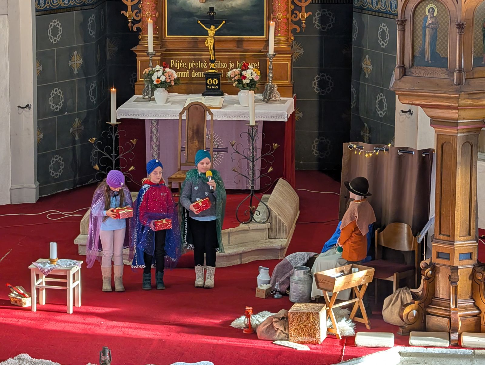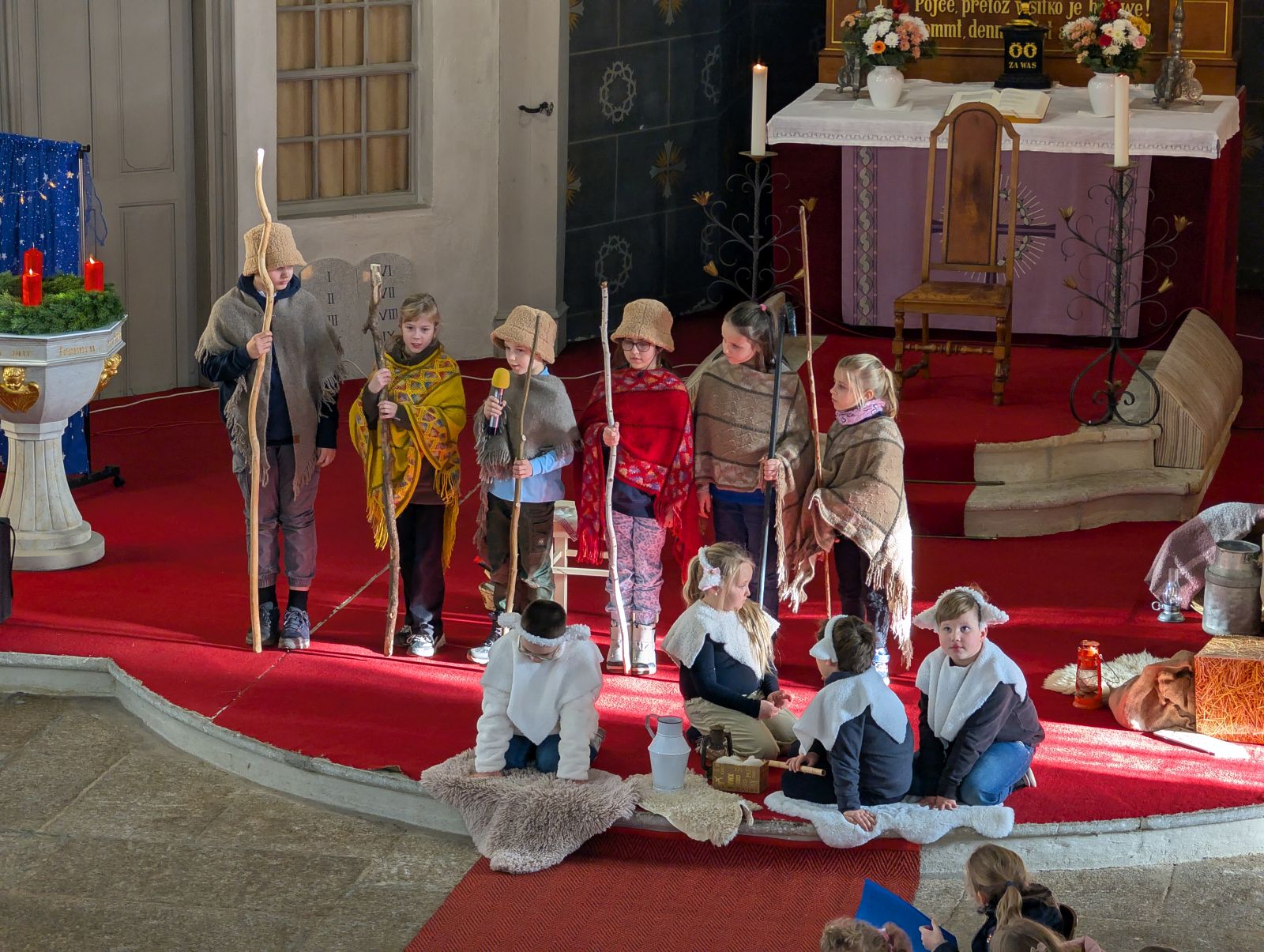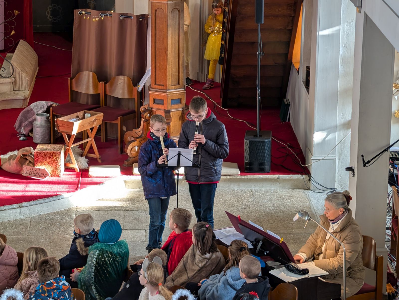 Es war wieder einmal ein wundervolles Krippenspiel, ausgedacht und mit viel Einfühlungsvermögen einstudiert von unserer Religionslehrerin Frau Osang. Unterstützt wurde sie dabei in musikalischer Hinsicht von Frau Seiler und einigen Instrumentalsolisten aus den Reihen unserer Schüler.